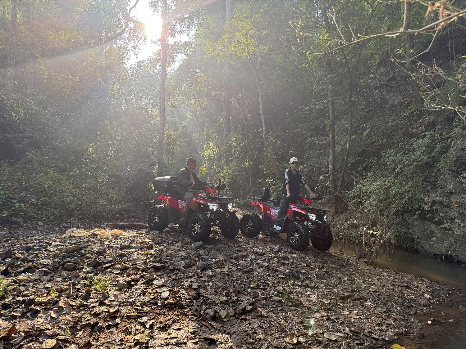 Our ATV Mae Khanin Nuea Family was founded thanks to the support of both communities, who entrusted us, the younger generation, with revitalizing village tourism. By promoting the Hundred Streams River Trail, we offer an exhilarating way to explore the area—riding ATVs through crystal-clear waters and breathtaking natural landscapes.